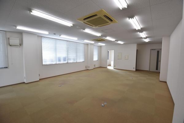 - 84坪、広々店舗。2F。ガラス張りになっており、外からも室内が見えます。駐車場も20台以上確保可能です。